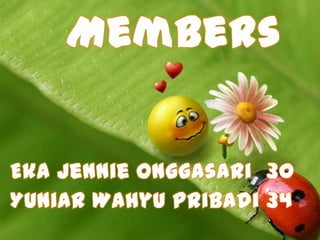 The document describes the key features and behaviors of a ladybug. It belongs to the insect class because it has a hard body, antennas, and segmented body. It lives on leaves and eats pest insects like aphids, making it a farmer's friend. It has a small black head, thin antennas, spotted hard wings, six clawed legs, and oval dome-shaped body. It can fly and secrete a bad-smelling liquid when in danger.