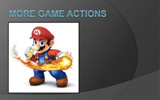 This document discusses various concepts for balancing games such as providing the right level of difficulty, complexity, and smooth learning curves to allow players to progress from novice to expert. It also covers techniques for balancing multiplayer games, including handicaps, symmetry, and team balance to give all players an equal chance to succeed. Game mastery, empowerment, and rhythm-based actions are addressed as ways to promote player engagement.