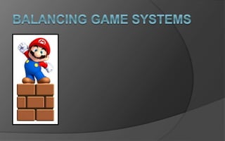 - Game balance refers to matching a game's difficulty to a player's skill as they progress, or ensuring all multiplayer players have an equal chance to succeed regardless of starting position or resources.