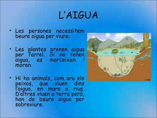 •Tots els éssers vius necessitem l’aigua