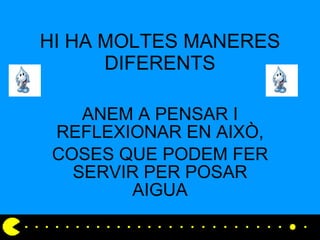 L’aigua mesurar 1. 2. HI HA MOLTES MANERES DIFERENTS ANEM A PENSAR I REFLEXIONAR EN AIXÒ, COSES QUE PODEM FER SERVIR PER POSAR AIGUA 3. 4. 5. 6. 7. 8. 9. 10. 11. 12. 13. 14. I LA PLUJA COM LA MESURAREM??? AMB UN PLUVIÒMETRE: que serveix per a mesurar en els dies de pluja l’AIGUA que cau a la nostra TERRA. N’heu vist mai CAP? 15. 16. TALLER MATERIAL Botella d’aigua petita. Tisores Retoladors permanents de les senyoretes Regle o troç de cartolina: PAUTA mesurar TREBALL EN PARELLES i molt silenci. FAREM EL NOSTRE PRÒPI PLUVIÒMETRE!!! 17. 18. 19.