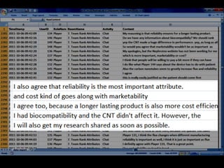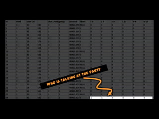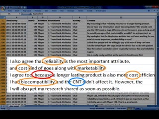 The document discusses how epistemic network analysis (ENA) can inform discourse-centric learning analytics. ENA is a technique used to analyze complex thinking in cultures of practice by mapping patterns of discourse. It can capture an epistemic frame that describes skills, knowledge, identity, values and epistemology. By applying ENA to analyze discourse data from learning environments, researchers may gain insights into students' thinking and learning processes. This could inform the design of more effective discourse-centric learning analytics tools and techniques.