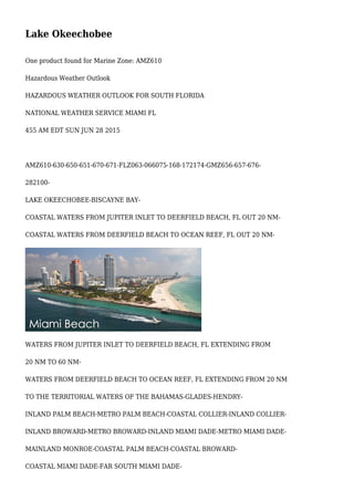 The hazardous weather outlook for South Florida includes isolated to scattered thunderstorms primarily over the interior and east coast, with risks of cloud to ground lightning, gusty winds, and heavy rainfall. There is also a slight chance of waterspouts in the Atlantic waters today. No other hazardous weather is anticipated at this time.
