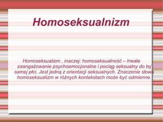 homoseksualizm oznacza stan, szczególne skłonności lub