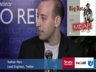 - The document discusses the Lambda Architecture, a system designed by Nathan Marz for building real-time big data applications. It is based on three principles: human fault-tolerance, data immutability, and recomputation.