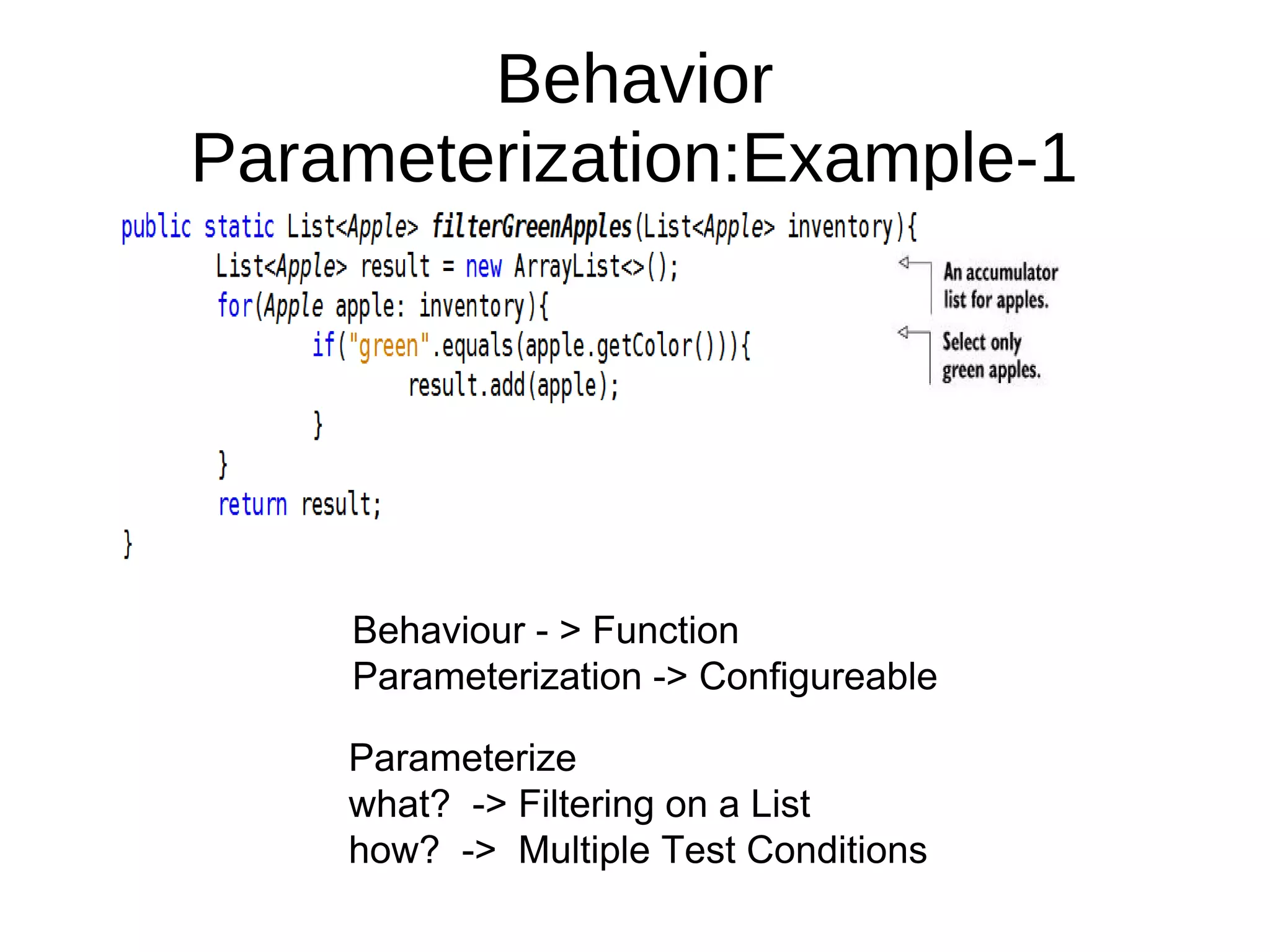 This document provides information about parameterization and lambda expressions in Java. It discusses how parameterization allows functions to be configured through parameters. Lambda expressions are described as anonymous functions that can be passed as arguments or stored in variables. The document outlines the benefits of streams in Java 8 for processing data in a declarative way through composable and parallelizable operations like filter, map, and reduce. It compares streams to collections and explains intermediate and terminal stream operations.