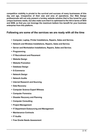 Greg Masley leads a team that provides IT support services including network administration, PC tech support, and web design/maintenance for businesses in Southern California. The services include installations, repairs, upgrades, and maintenance of computers, laptops, printers, networks, servers, and websites. They aim to optimize networks and systems for improved business performance and reduced IT costs. Their team is certified in networking and security and can provide same day on-site support across Orange County and neighboring regions.