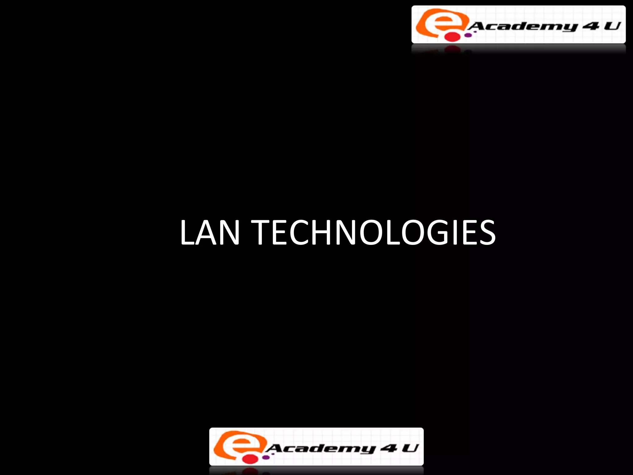 There are three main types of local area network (LAN) topologies: star, ring, and bus. The star topology uses a central hub that all computers connect to. The ring topology connects each computer to the two adjacent computers, forming a ring. The bus topology uses a single cable that all network devices attach to. Ethernet and LocalTalk are examples of bus networks that use Carrier Sense Multiple Access with Collision Detection (CSMA/CD) to determine when devices can transmit data. Token ring networks use a token passing mechanism where devices must possess a token to transmit and then pass it to the next device.