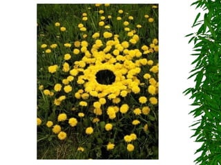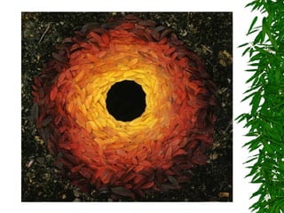 Land art, also known as Earthworks, is an art movement where the landscape and artwork are interconnected. It uses natural materials found in nature like soil, rocks, wood, and water to create large-scale sculptures and installations. Some examples of land art mentioned are Michael Heizer's Yellow Ramp, Robert Smithson's Spiral Jetty, and Walter de Maria's The Lightning Field.