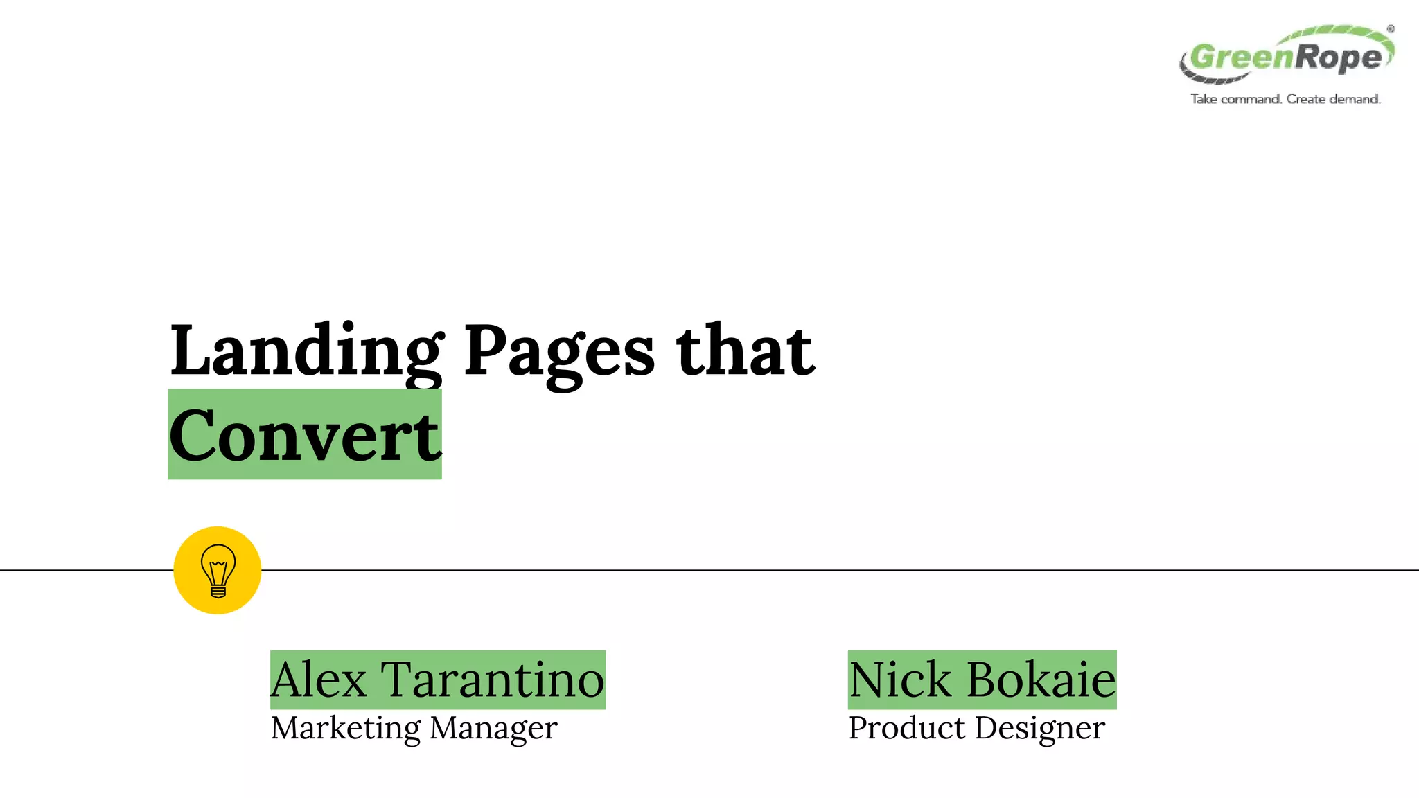 Nick Bokaie and Alex Tarantino presented on effective landing page design. They discussed the purpose of landing pages is to drive clicks or leads from marketing campaigns. There are two main types - click-through pages meant to guide users to a desired page, and lead generation pages to capture user data. They covered fundamentals of quality landing pages like positioning calls-to-action above the fold and using directional cues. The presentation also provided tips for creating a strategy, best practices like maintaining branding, and examples using the GreenRope platform before opening for questions.