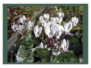The document summarizes various plant species found in Northern Cyprus, including trees, shrubs, flowers, and fruits. Some of the plants discussed include pine trees, olive trees, citrus trees, tulips, eucalyptus trees, junipers, and oak trees. The vegetation in Northern Cyprus is shaped by the Mediterranean climate and includes evergreen and deciduous species. Around 1900 varieties of plants grow naturally on the island.