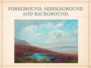 This document provides guidance for analyzing landscape paintings by looking for key elements such as the foreground, middle ground, and background to understand depth and scale; movement to understand flow; the focal point to understand emphasis; and texture to understand surfaces. Students are instructed to analyze a landscape image in four paragraphs describing, analyzing, interpreting, and evaluating the painting based on these elements.