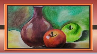 Landscape drawing depicts views of landforms and may include animals, people, trees, clouds and skies. It has three parts - the foreground, middle ground and background. Still life is a picture or drawing of arranged objects forming a complete image, with some objects partly obscured by overlapping others. Balance is an important principle where the arrangement of objects on the right and left sides of the drawing are equal.