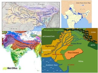 Streams flow downhill through the lowest areas of the landscape, eroding paths known as drainage patterns. A stream's drainage pattern is influenced by the underlying topography and geology. There are several common drainage patterns, including dendritic patterns where many small streams join into larger rivers, rectangular patterns in areas with parallel faults, and radial patterns resembling spokes on a wheel around mountain domes. The most frequent pattern is dendritic, occurring where the bedrock is uniform. Drainage patterns provide insight into the geological structures of the landscape.