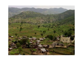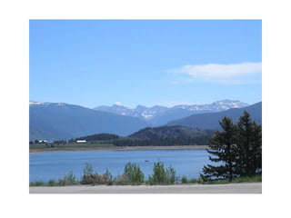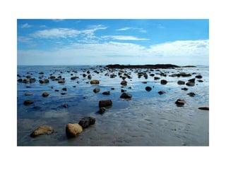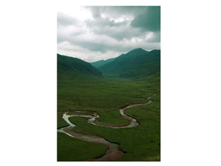 A landscape consists of natural elements like water, animals, rocks and plantlife as well as things built by humans such as houses, roads and tunnels. A landscape is what can be seen across an area of land. Key natural features of landscapes include mountains, coasts and beaches. Mountains have summits, slopes and feet while coasts may have cliffs near beaches.