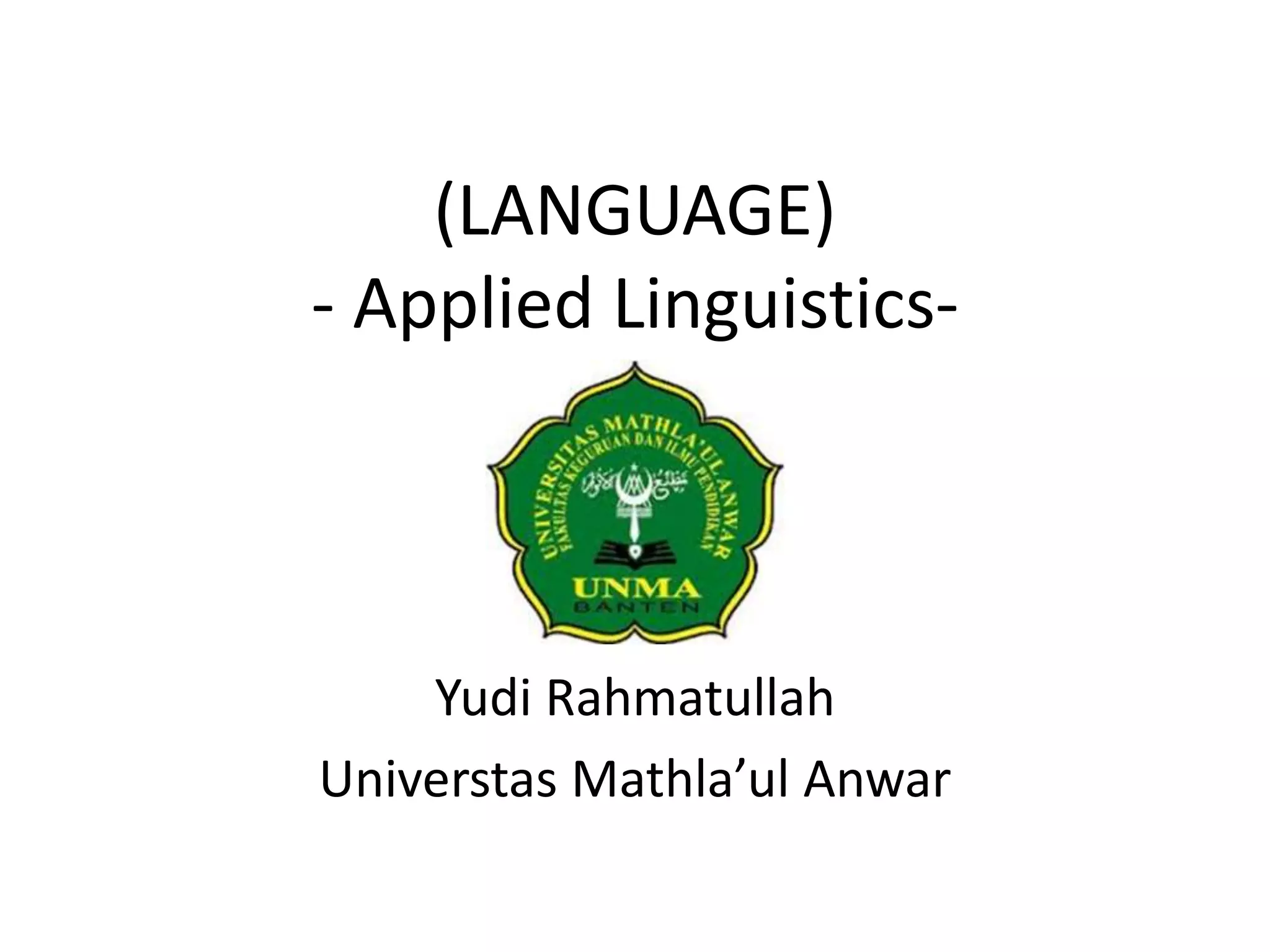 This document discusses key concepts in linguistics, including definitions of language, linguistic knowledge, creativity in language, grammar, language acquisition, sign languages, animal communication systems, attempts to teach language to primates, theories of language origin, and the relationship between language and thought. It provides examples of linguistic universals and differences between languages in areas like sound systems, words, and expressions of location.