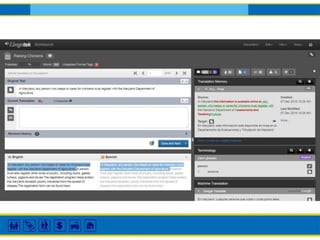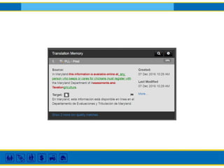 This document provides instructions and guidelines for a training on using machine translation (MT) and translation memory (TM) tools responsibly to create legal materials in other languages. It discusses best practices like having translations legally reviewed, using plain language, and caution with tools like Google Translate. Panelists from legal organizations discuss their experiences using MT, TM, and creating multilingual content. Key lessons are that context is important, legal concepts require careful translation, and it's generally best to have translations professionally done when possible.