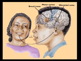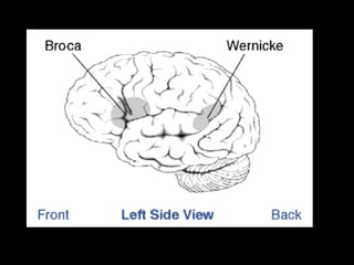 The document explores the relationship between language and brain function, covering neurolinguistics and various language disorders such as aphasia. It discusses stages of first language acquisition in children, including the roles of caregiver speech and the development of morphology and syntax. Additionally, it contrasts first and second language acquisition, highlighting key approaches like the grammar-translation method and communicative approaches to language learning.