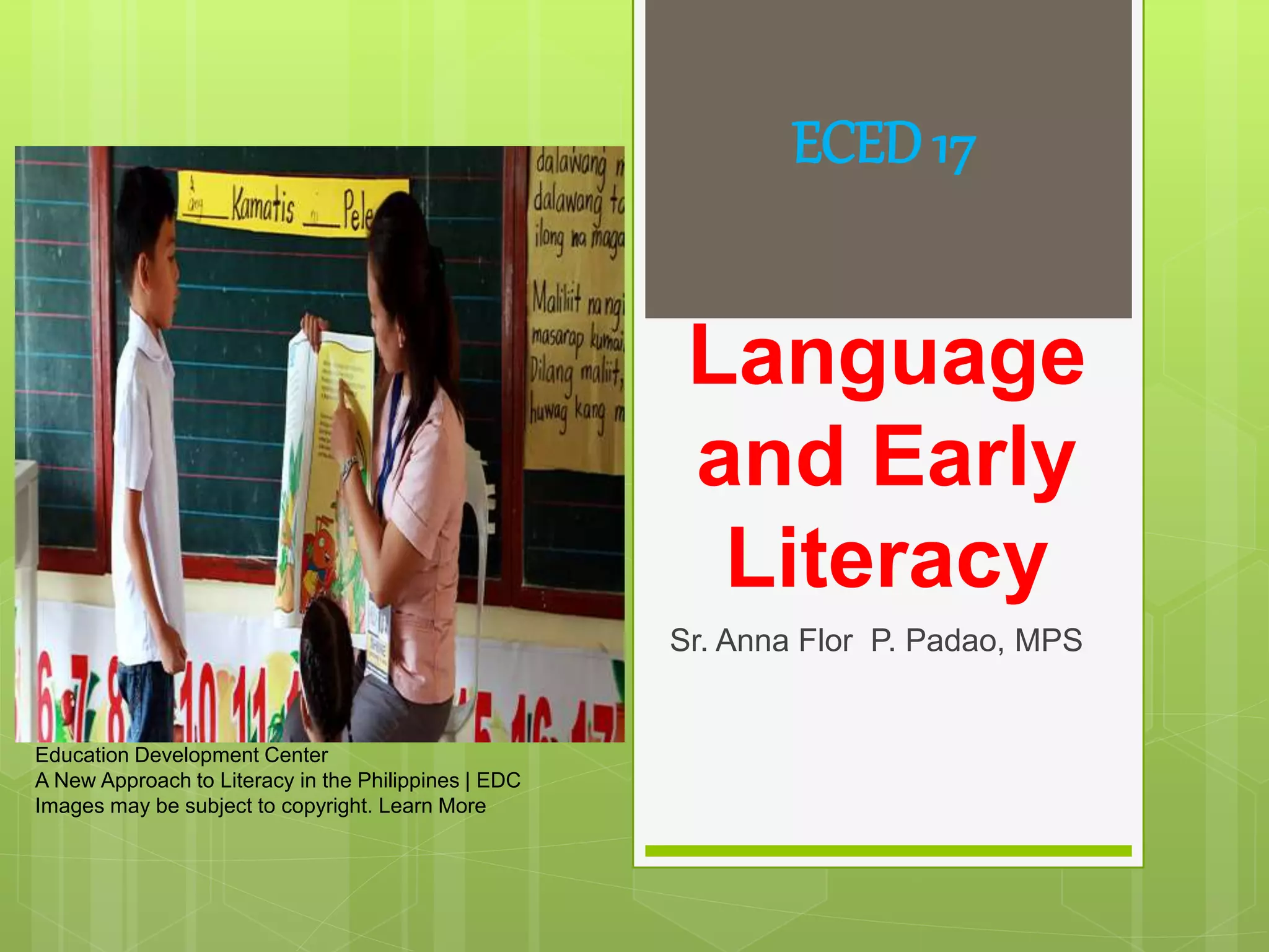 The document discusses early language and literacy development from infancy through age 3. It notes that language, reading and writing skills develop simultaneously through social interactions using books and literacy materials. Some key early literacy behaviors that help develop these skills include book handling, recognizing pictures, comprehending stories, and interacting with books through sounds, words and questions. The document also provides recommendations for sharing books with young children in a developmentally appropriate and engaging way.