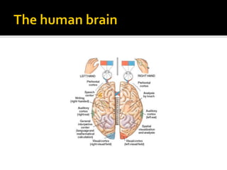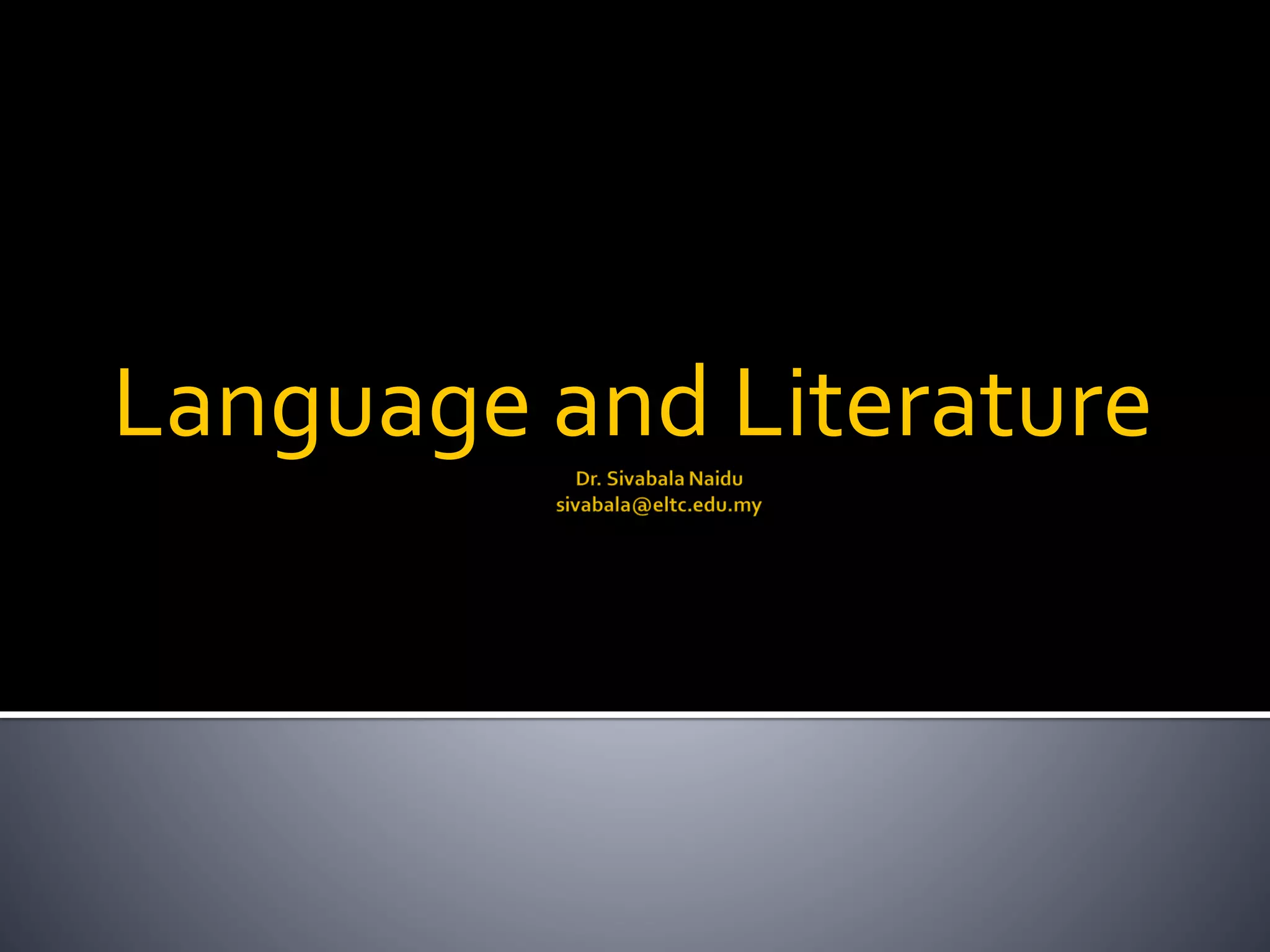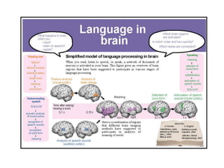 The document provides an overview of language processing, highlighting the brain's role in communication through distinct functions of the left and right hemispheres. It discusses grammar as a mental system, the components of language study like phonetics, morphology, syntax, and semantics, and presents sociolinguistics and literary analysis as key areas of focus. The content is aimed at beginners aiming to understand the connection between language and literature.