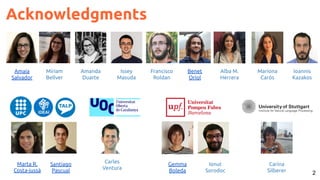 The document outlines various models and techniques related to generative and discriminative tasks in language and vision, focusing on image and video captioning, visual question answering, and sign language translation. It references numerous studies and methods, including encoder-decoder representations, attention mechanisms, and multimodal machine translation. Key topics include combating data bias, dynamic memory networks, and advancements in visual reasoning and object grounding through language.