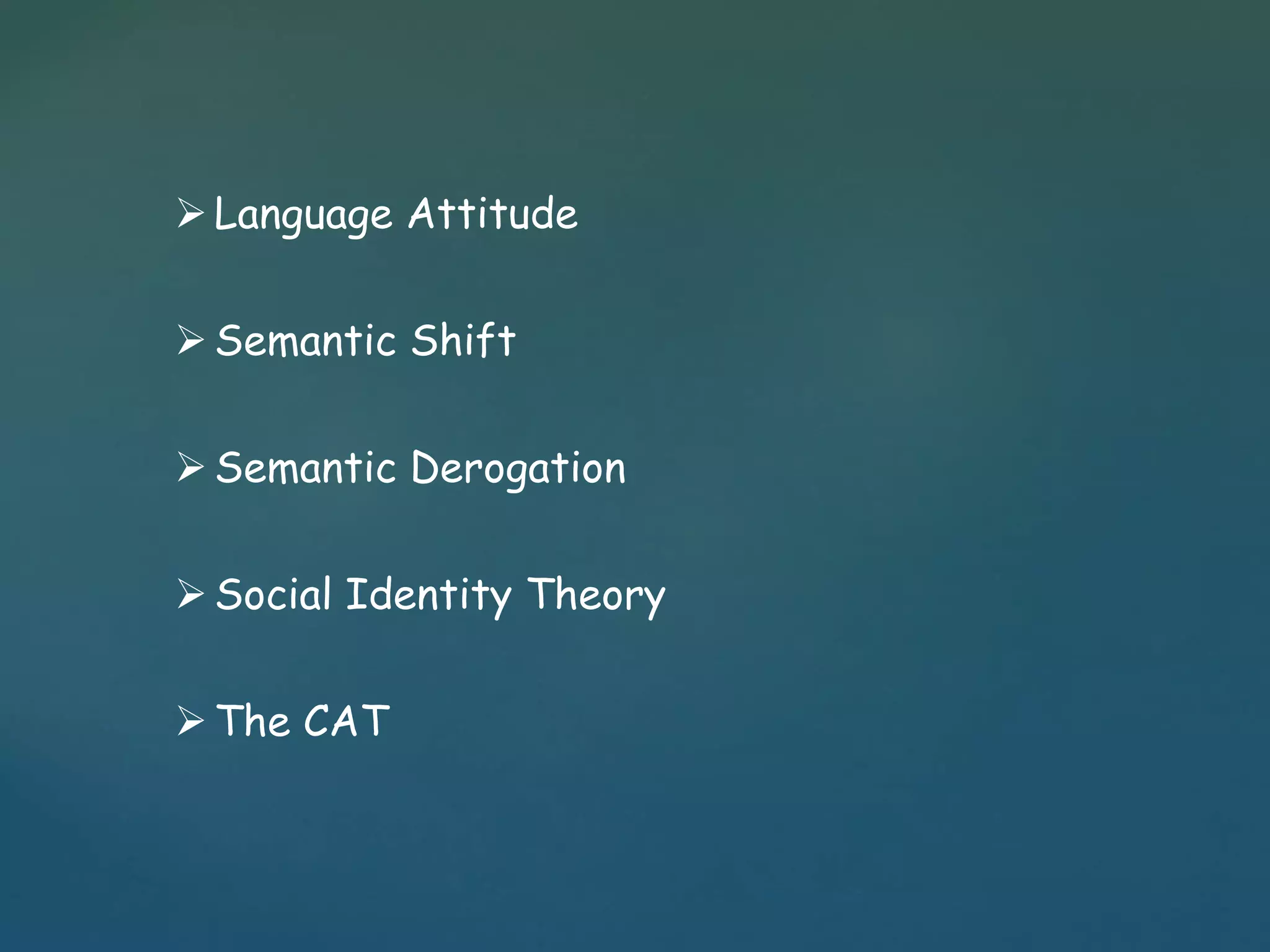 Language attitudes can influence how people communicate and perceive others. Semantic shift describes how word meanings change over time, such as "girl" shifting from a general child to specifically referring to females. Semantic derogation occurs when a word carries different positive or negative connotations when applied to different genders. Social identity theory and communication accommodation theory examine how language influences social interactions and perceptions of convergence or divergence from others.