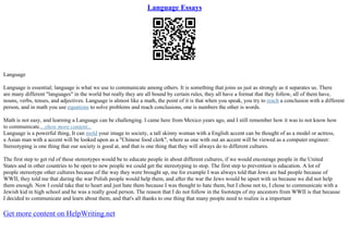 This document discusses the importance and nature of language. It notes that language allows humans to communicate thoughts and ideas to others. While there are many languages in the world, they all follow certain rules with components like nouns, verbs, and adjectives. The document also discusses how learning a new language can be challenging but provides benefits, and how language influences perceptions and stereotypes of different cultures. It argues that increasing education and open communication between cultures can help reduce stereotyping.