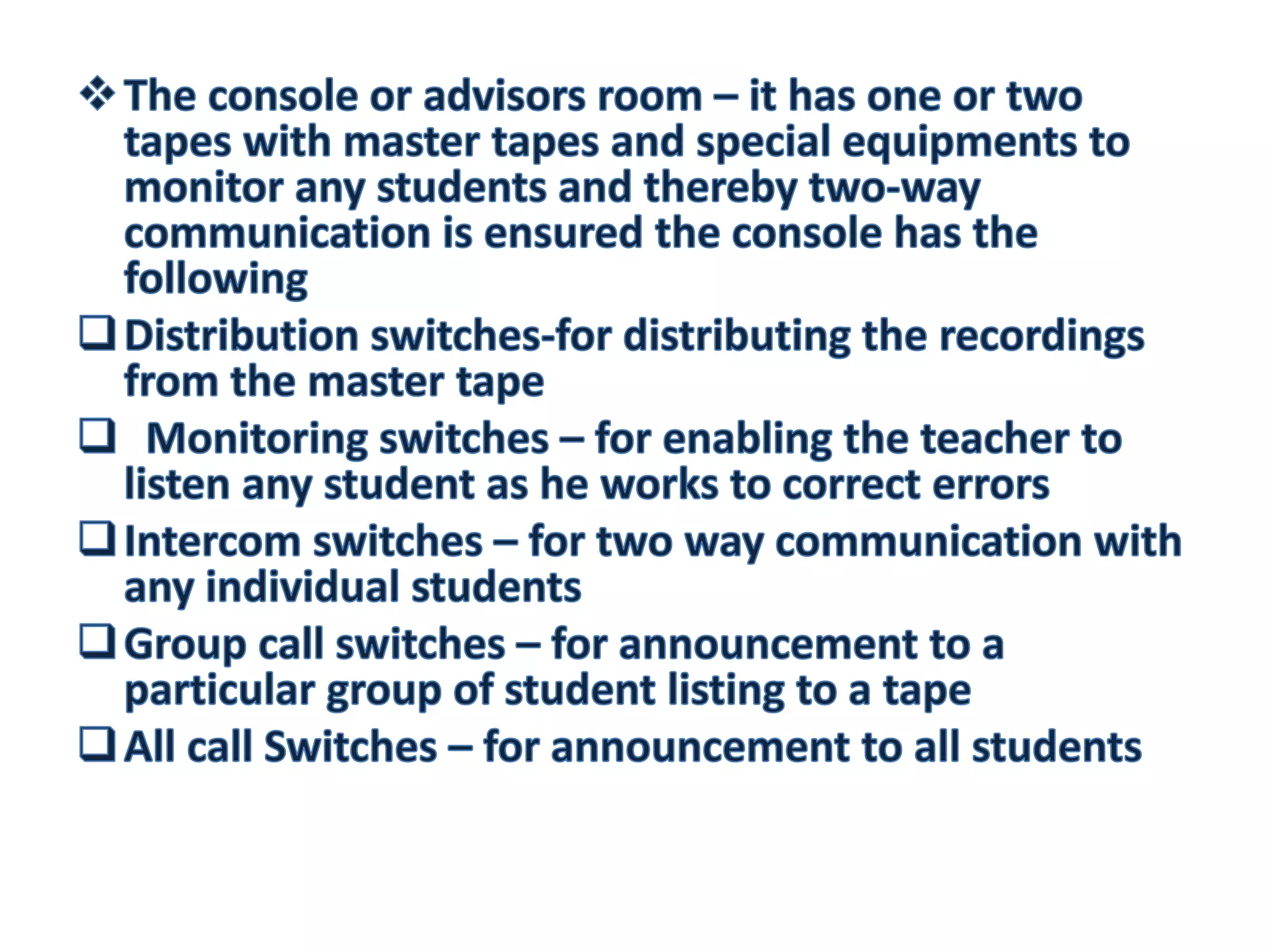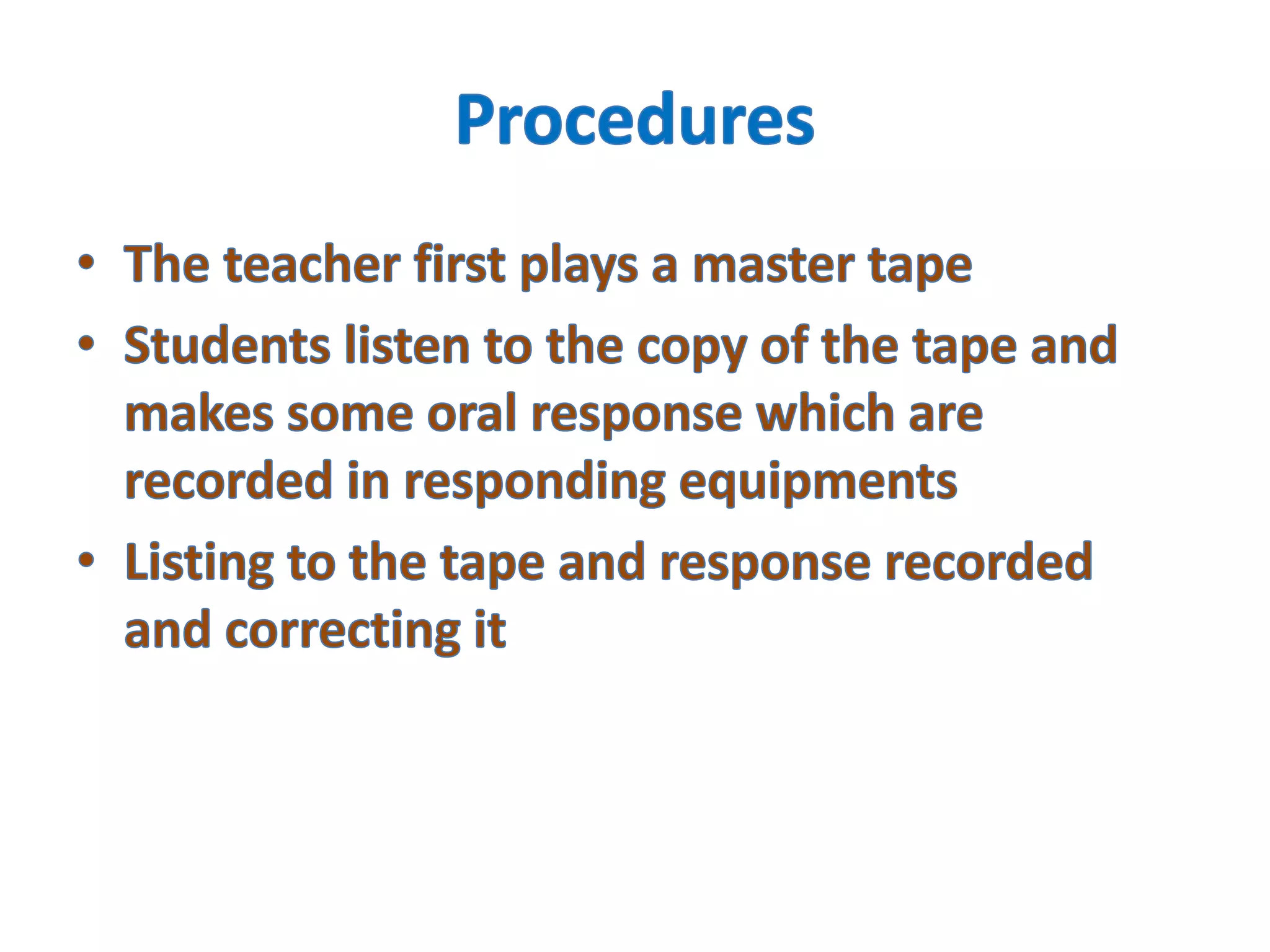 This document summarizes the operation procedures and limitations of an educational technology system used for language learning. The system allows students to access language programs through broadcast, selecting tapes from a central library, or dialing programs on a touch-tone device. However, the system is limited to 20 students, does not develop reading and writing skills, requires native speaker experts which are costly, and only experts can operate it.