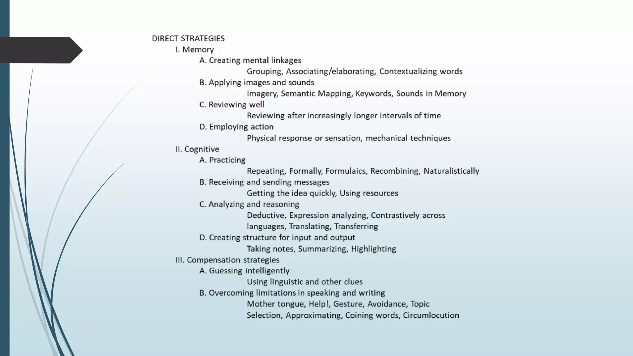 The document discusses language learning strategies and learner autonomy. It defines language learning strategies as steps consciously selected by learners to improve their second language learning or use. Strategies are classified into metacognitive, cognitive, social/affective categories. Research shows using appropriate strategies can improve language proficiency. The document advocates teaching strategies to learners and shifting control of learning to them, given the link between strategic competence, autonomy, and learning success.