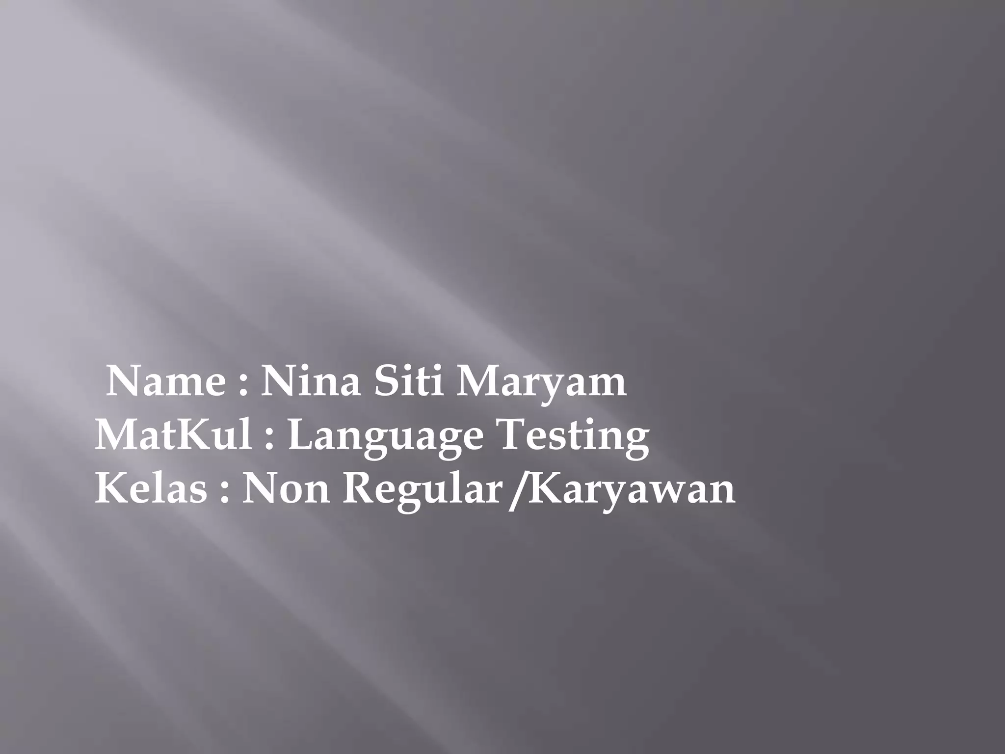 1) The document provides information about a reading test completed by Nina Siti Maryam for her Language Testing class.