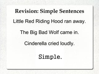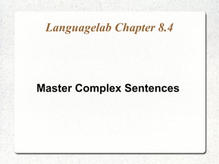 This document discusses complex sentences and their components. It provides examples of simple, compound, and complex sentences. Complex sentences use connectors like "because, if, since, although, when, after, in order that, til" to join an independent clause and dependent clause. The document ensures the reader understands what each connector means and identifies them in examples. It checks the reader's understanding of what makes a sentence complex and the differences between compound and complex sentences.