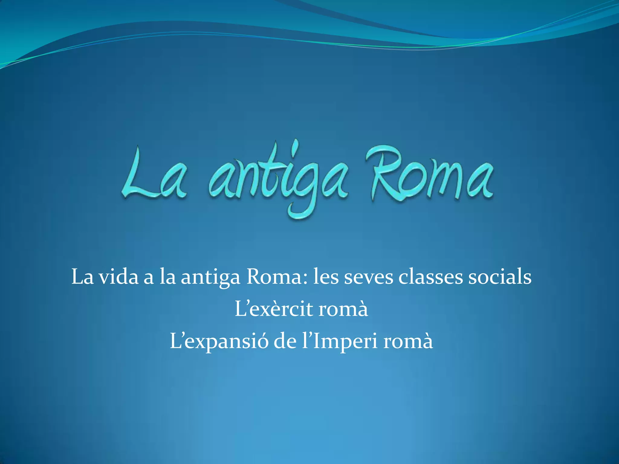 La antiga RomaLavida a la antiga Roma: les seves classes socialsL’exèrcit romàL’expansió de l’Imperi romà
