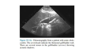 Kolesistitis adalah radang pada kandung empedu yang sering disebabkan batu empedu. Gejalanya berupa nyeri kuadran kanan atas abdomen, demam, mual dan muntah. Diagnosis didukung dengan adanya tanda inflamasi lokal dan sistemik serta hasil pencitraan. Pengobatan meliputi antibiotik, analgesik, dan kolesistektomi laparoskopi untuk mencegah komplikasi seperti perforasi dan peritonitis. Prognosis umumnya baik bila tidak berkompl