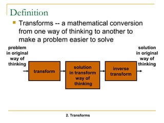 This document provides an overview of Laplace transforms. Key points include: