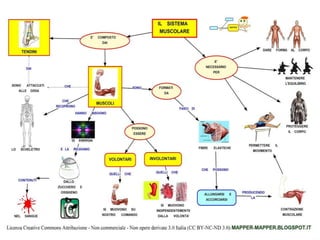 Il documento descrive l'apparato muscolare umano, evidenziando la presenza di circa 600 muscoli suddivisi in tre categorie: muscoli scheletrici, muscoli lisci e muscolo cardiaco. Viene spiegato il funzionamento di questi muscoli e il loro ruolo nei movimenti del corpo, così come la loro struttura composta da fibre muscolari e tendini che collegano i muscoli alle ossa. Inoltre, si accenna a potenziali lesioni muscolari e a curiosità sui muscoli del viso e degli occhi.