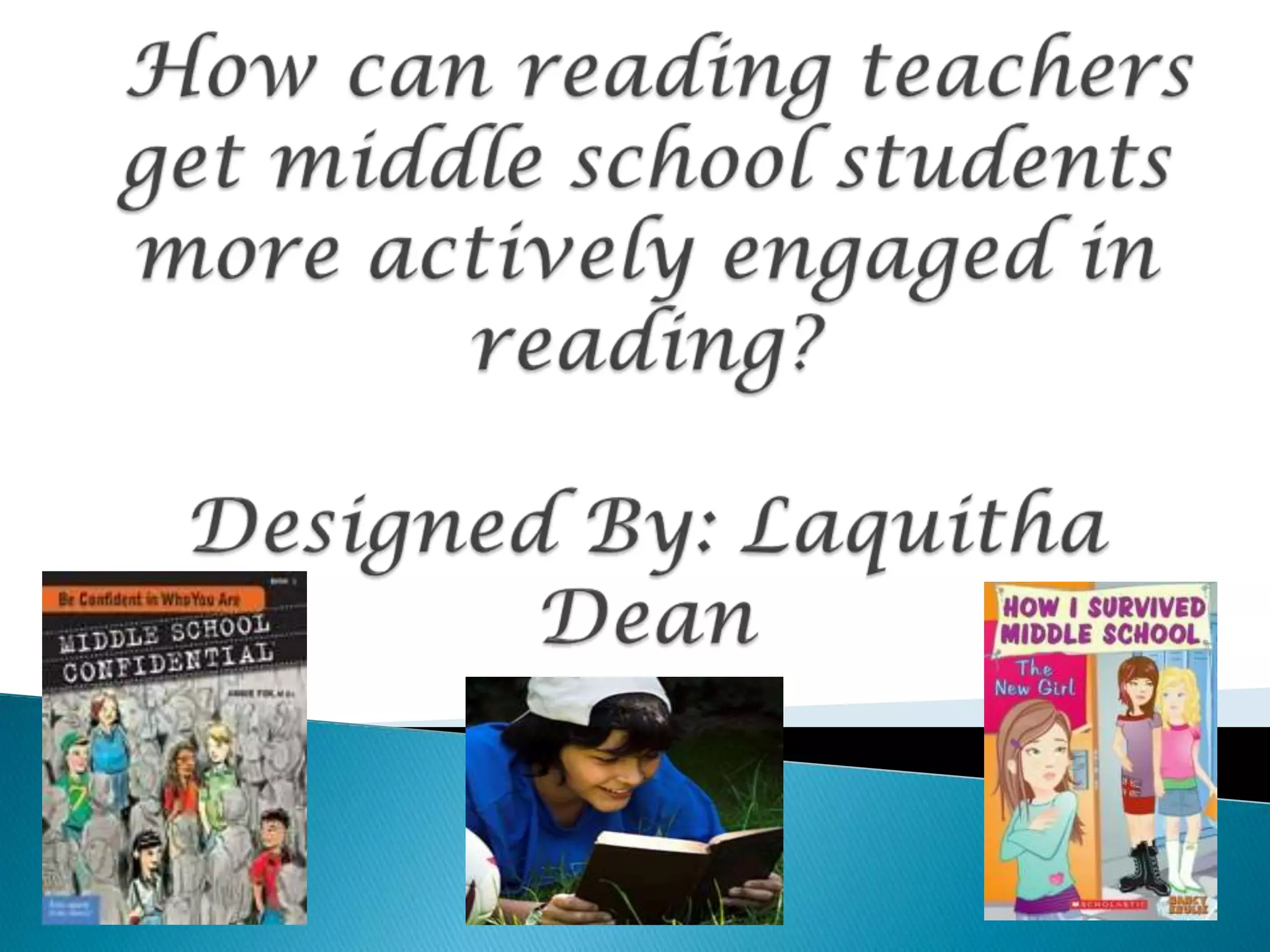 The document discusses strategies for engaging middle school students in reading, emphasizing the importance of student participation and parental involvement. It suggests methods like scaffolding, interactive activities, and maintaining reading rituals to foster interest in reading. The role of technology in reducing traditional reading engagement is also highlighted, alongside the necessity for teachers to understand their students' literacy levels.