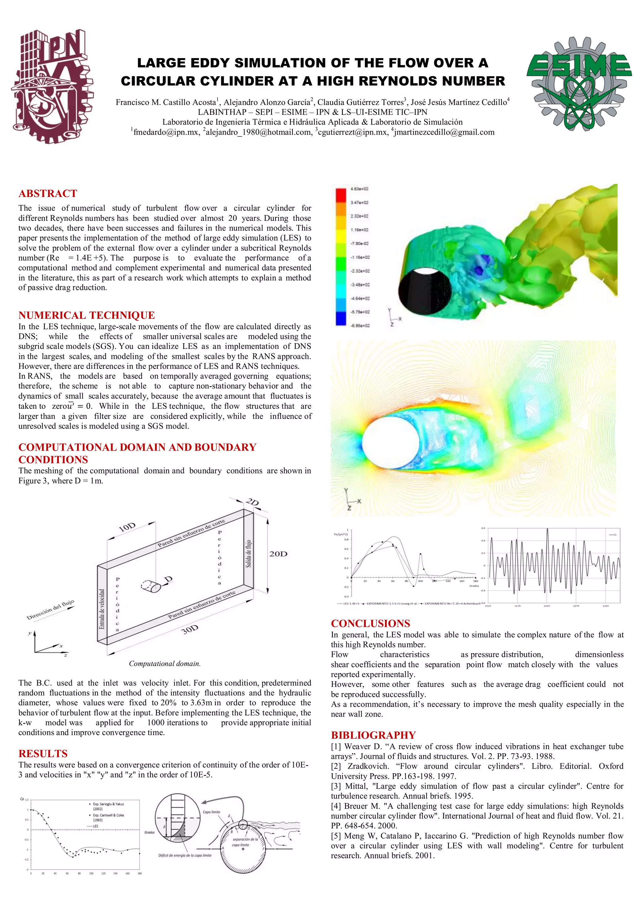 The paper discusses the application of large eddy simulation (LES) to analyze turbulent flow over a circular cylinder at a high Reynolds number (Re = 1.4e+5), aimed at improving drag reduction methods. The LES model successfully captured complex flow characteristics, closely matching experimental data for pressure distribution and shear coefficients, though certain features like average drag coefficient were not accurately reproduced. Recommendations include enhancing mesh quality, especially near the wall, to better simulate turbulent flow behavior.