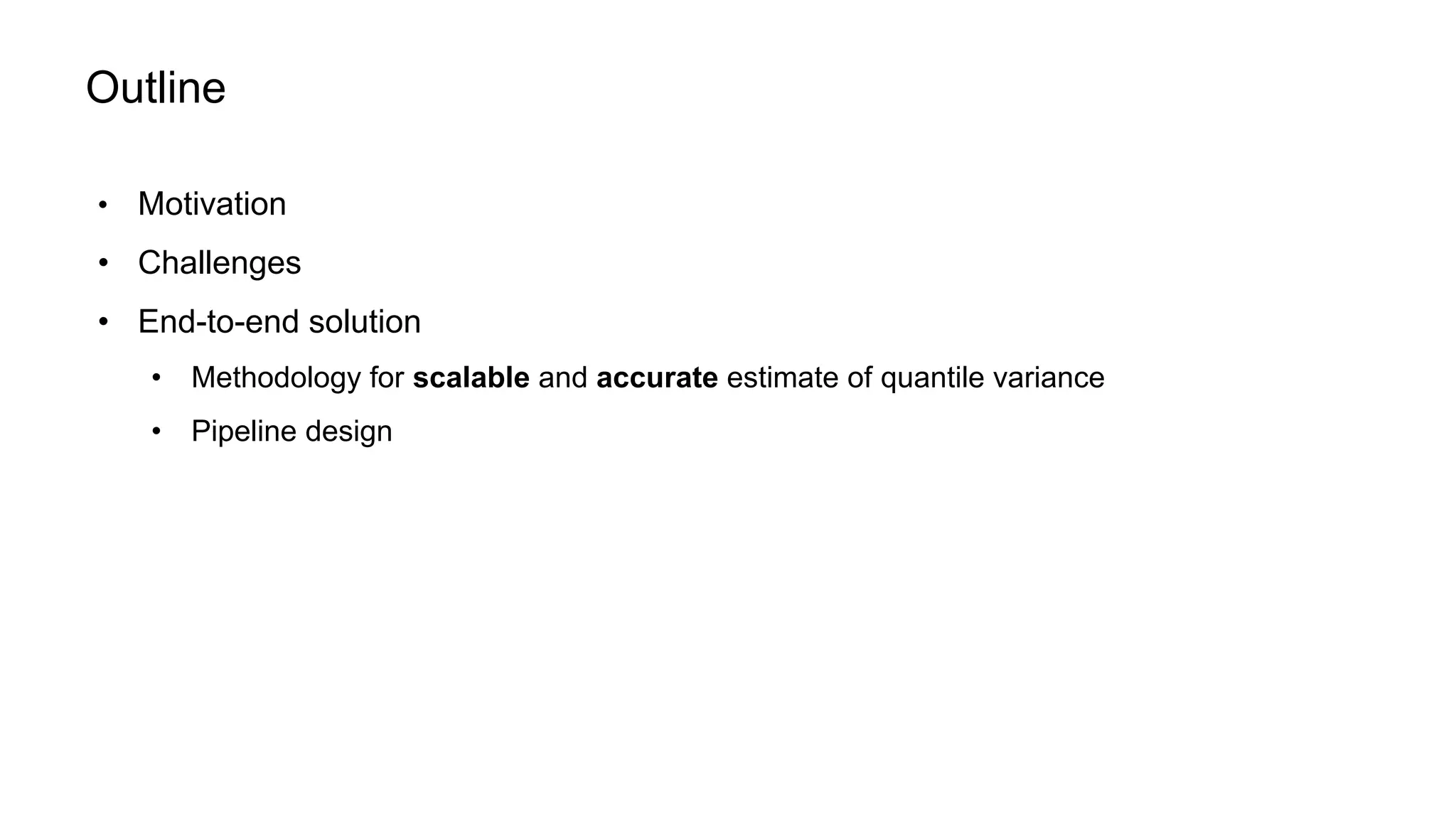 The document describes a methodology for conducting large-scale online experiments using quantile metrics. It outlines three key challenges: 1) ensuring experiments are statistically valid and scalable given hundreds of concurrent tests involving billions of data points, 2) existing solutions are either statistically valid or scalable but not both, and 3) protecting users from slow experiences by detecting degradation in page load time quantiles like P90. The proposed solution provides statistically valid quantile estimates while being 500x faster than traditional bootstrapping through an asymptotic distribution approximation, compressed data representations, and optimized pipeline design that involves co-partitioning and aggregating histogram summaries across partitions. Results demonstrated the ability to analyze over 300 experiments, 3000 metrics, and up to 500 million members