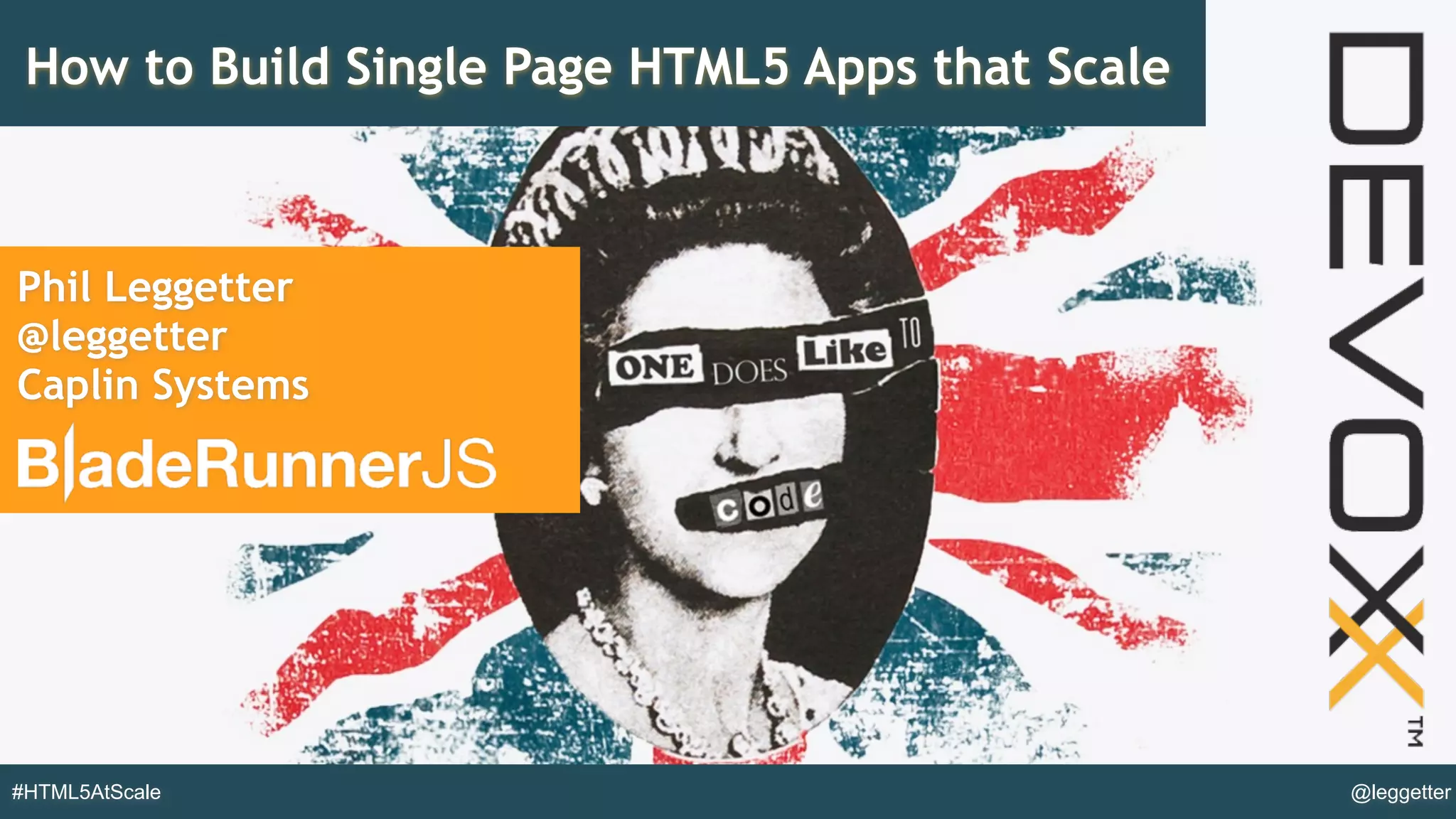 The document discusses strategies for building large-scale single-page HTML5 applications, highlighting the complexity and significant developer effort required for maintenance. It emphasizes the importance of a structured architecture, effective testing, and the use of services to manage functionality and improve performance. Additionally, it outlines best practices for developer collaboration and maintaining code quality through components, modular design, and automation tools.