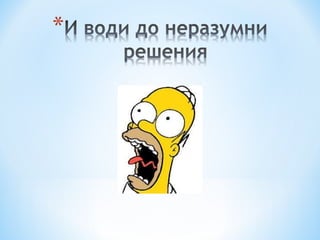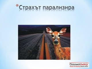 Ако възприемем, чесправянето със заплахата е свръх възможностите ни … Игнорираме посланието Отричаме риска Осмиваме или реагираме агресивно на източника или посланието ( и го игнорираме ) Вредното поведение може дори да зачести ( ефектът на бумеранга )