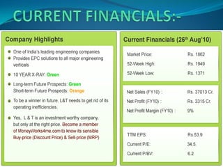 Larsen & Toubro (L&T) was founded in 1938 in India as a partnership firm by two Danish engineers, Henning Holck and Soren Kristian Toubro. It was converted to a private limited company in 1946 and then a public limited company in 1950. Headquartered in Mumbai, L&T is a major technology, engineering, construction, manufacturing and financial services conglomerate with business activities spanning engineering, construction, electrical and electronics, IT and financial services.
