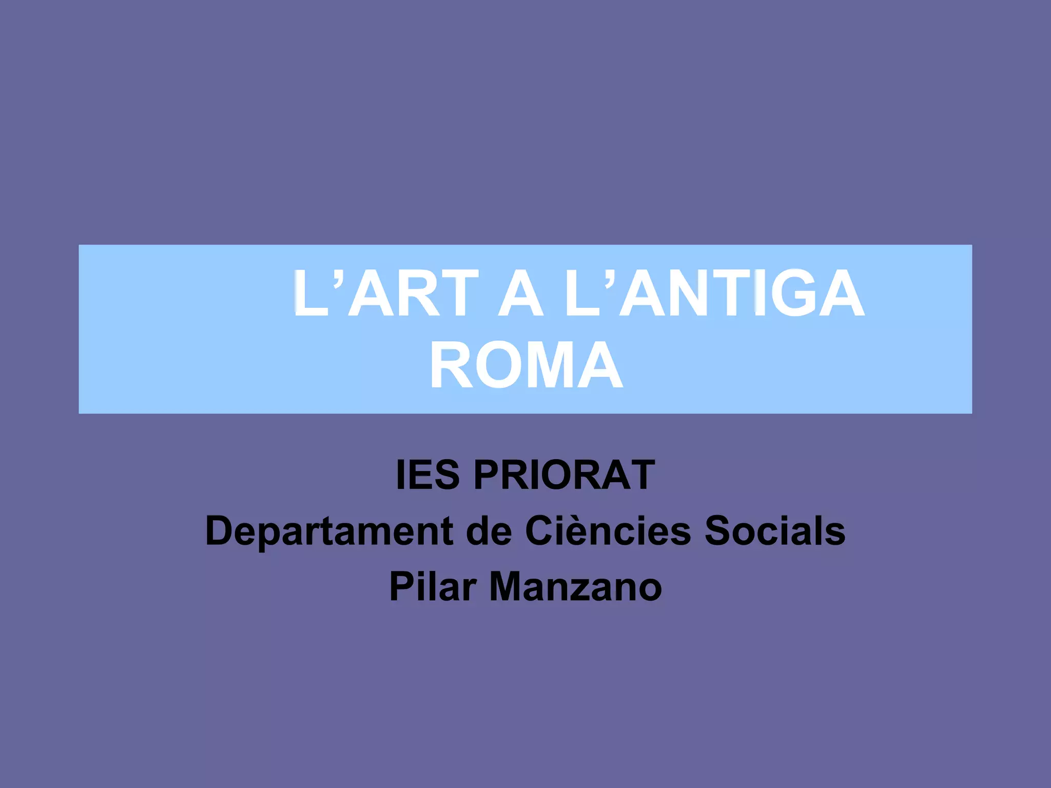 L’ART A L’ANTIGAROMA IES PRIORAT Departament de Ciències Socials Pilar Manzano