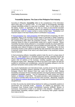 1) Traceability systems allow the tracking of goods throughout the supply chain and are important for food safety. They help facilitate recalls and identify production issues.