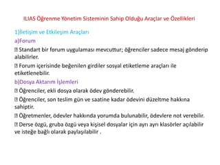 ILIAS Öğrenme YönetimSisteminin Sahip Olduğu Araçlar ve Özellikleri