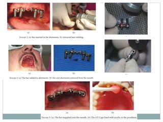 The document discusses the application and advancements of lasers in oral surgery and prosthodontics, detailing their historical development, physical principles, and various types of lasers used in dental practices. It highlights the benefits of lasers in enhancing patient care, including minimizing pain, reducing bacterial presence, and facilitating surgical procedures. The document also emphasizes laser classification, operational parameters, and specific applications in managing soft and hard tissues in dentistry.