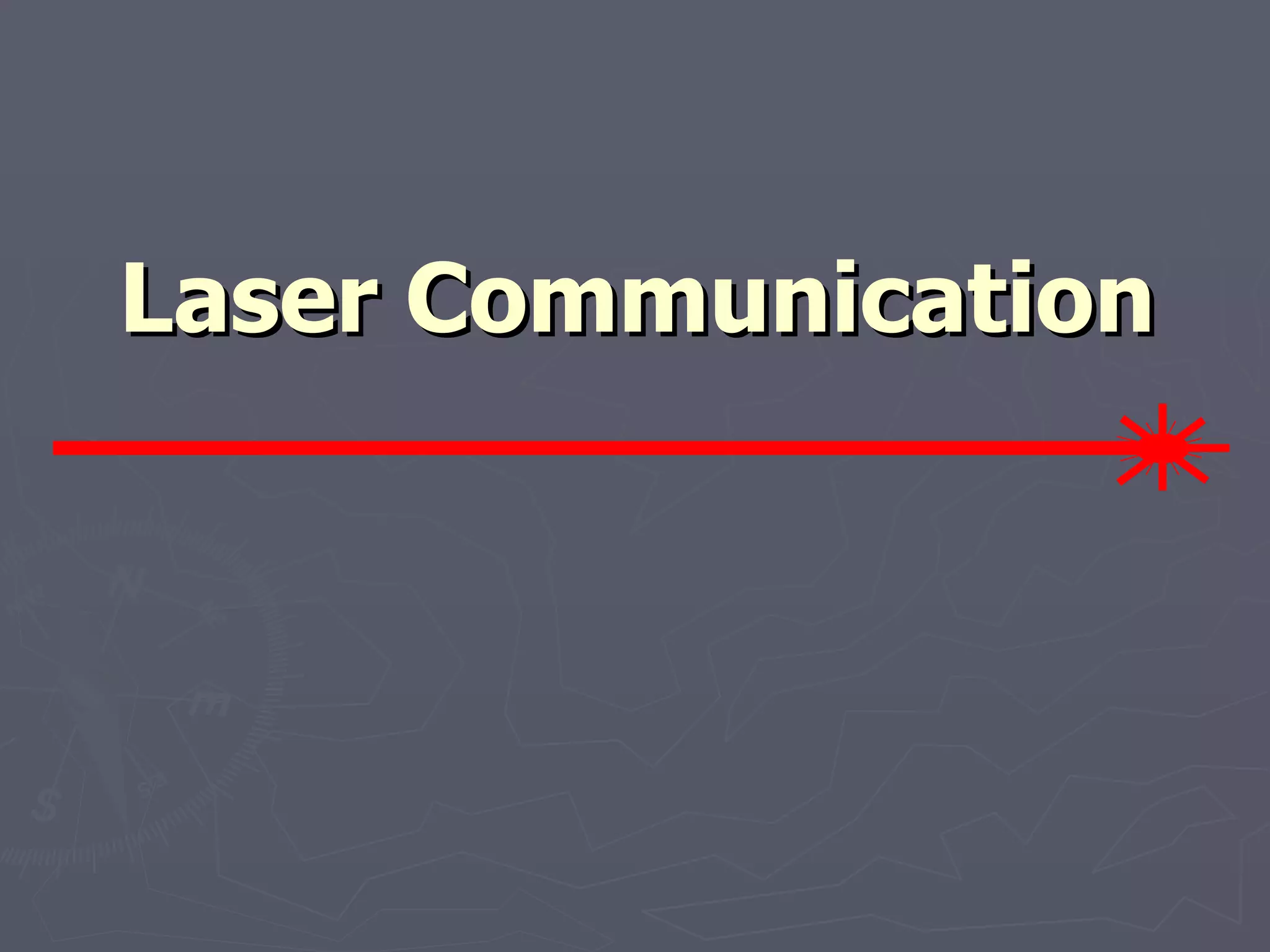 Laser communication uses lasers to transmit information through free space instead of fiber optic cables. It works similarly to fiber optics but transmits the beam through the atmosphere instead of cables. The transmitter converts signals into laser light and the receiver includes a telescope to capture the beam and detectors to convert it back into signals. Laser communication has advantages over radio frequency and fiber optics for applications where laying cable is not possible or practical such as for satellites, remote areas, and emergencies due to its high bandwidth, directivity, security, and smaller antenna size.