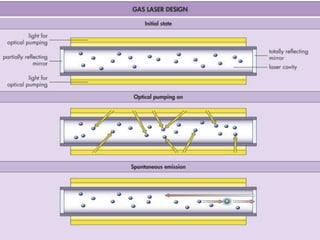 This document discusses the use of lasers in the treatment of glaucoma. It begins by introducing different types of lasers used, including Nd:YAG lasers. It then covers specific laser procedures for glaucoma such as laser iridotomy to relieve pupillary block, laser iridoplasty to modify the iris, and laser trabeculoplasty to increase outflow. It compares argon laser trabeculoplasty to selective laser trabeculoplasty. The document also discusses laser techniques for angle closure glaucoma, post-operative treatment, and cyclophotocoagulation to reduce aqueous production. Throughout, it provides details on laser parameters and outcomes of these procedures.