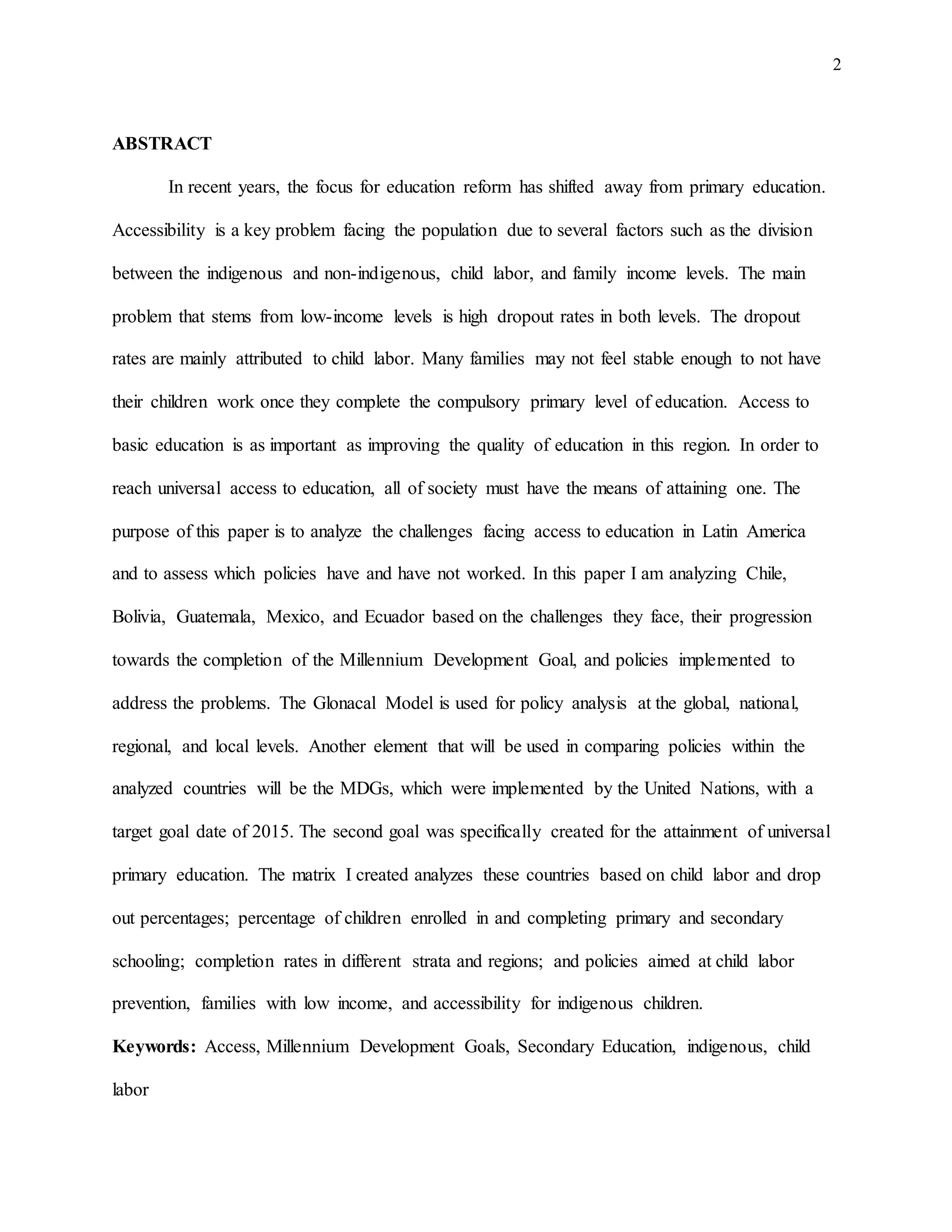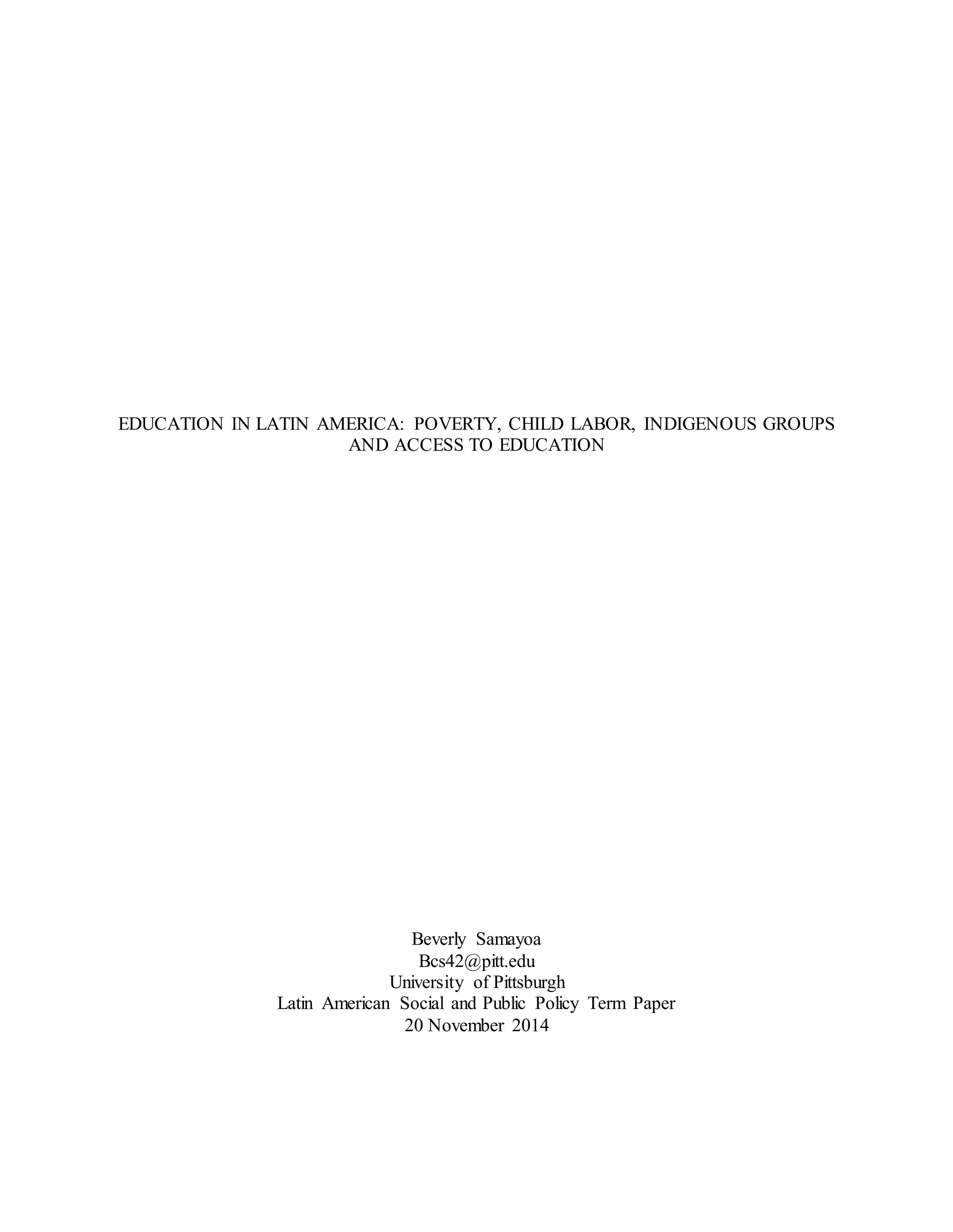 This document summarizes challenges to education access in Latin America, focusing on Bolivia, Ecuador, Guatemala, and Mexico. It discusses factors like poverty, indigenous identity, and child labor that affect school enrollment and completion. The document also analyzes education policies in the four countries, including conditional cash transfer programs, laws addressing indigenous language barriers, and projects to expand access to secondary education. The overall goal is to compare how effectively different policies have addressed social inequalities hindering children's education.