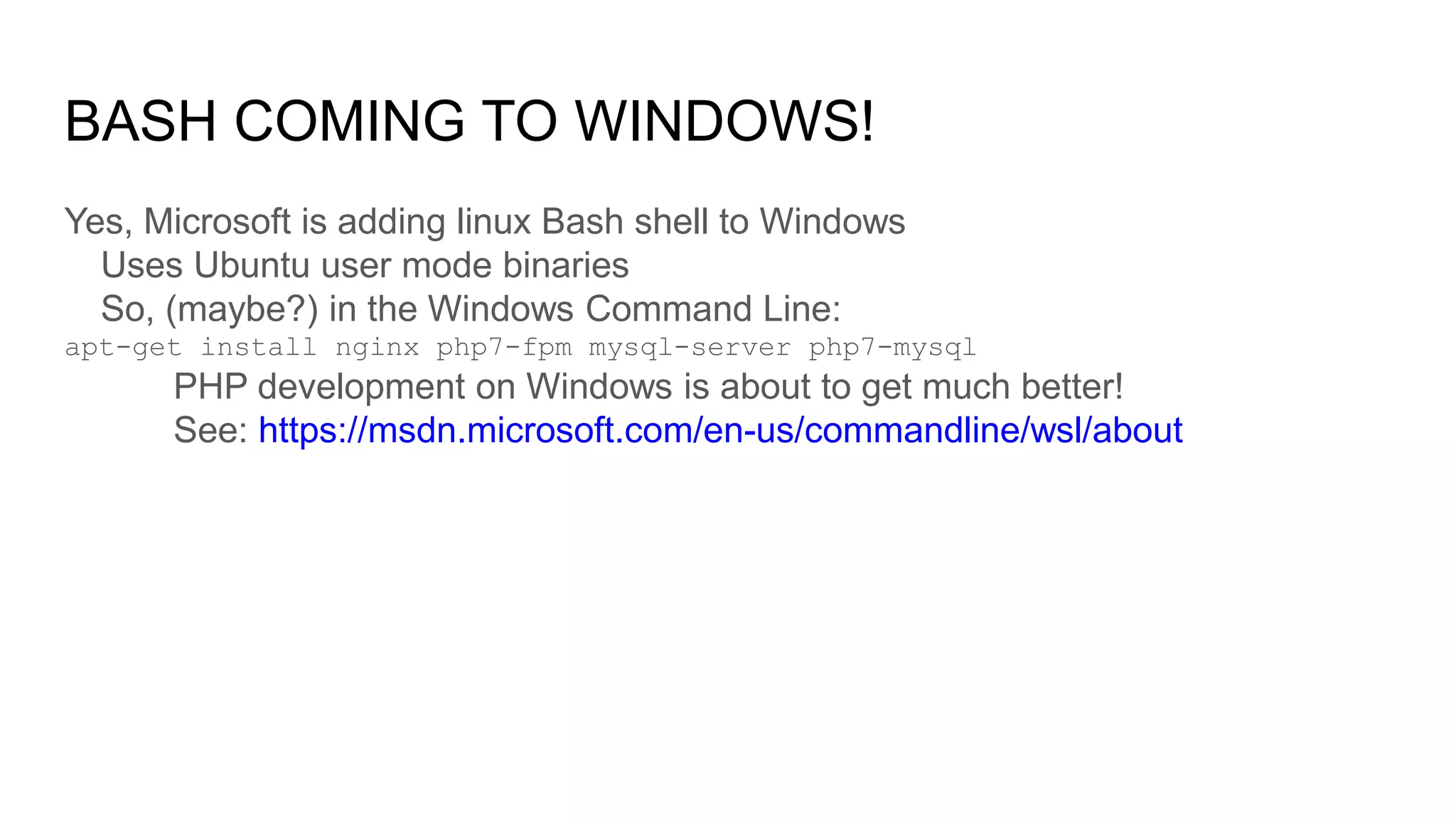 - Microsoft is adding the Linux Bash shell to Windows which will allow installing packages like PHP, Nginx, and MySQL from the Windows command line.