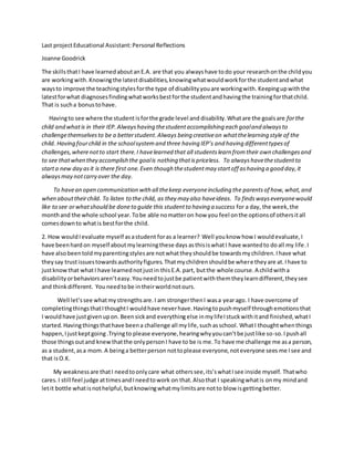 - The author learned the importance of researching students' disabilities and keeping up to date on best practices to meet their needs and goals outlined in their IEPs. She learned to be creative in her teaching style and approach for each student.